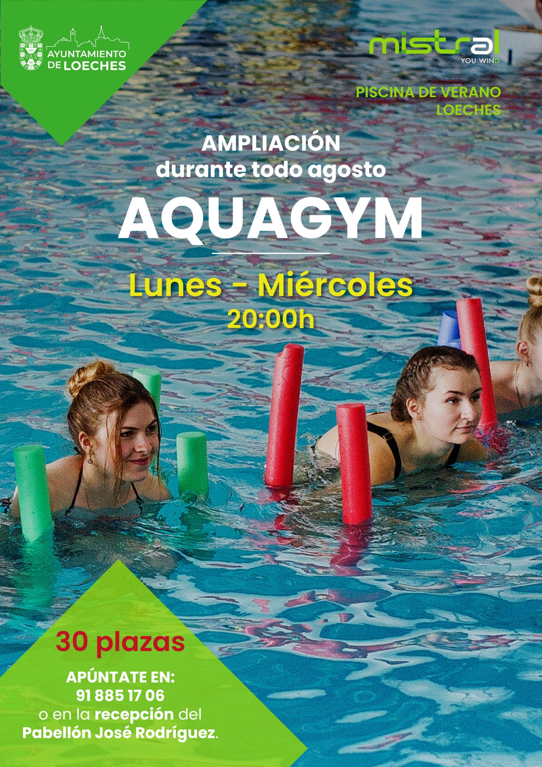 Tras finalizar las clases de Aquagym del mes de julio y tras la satisfacción cosechada entre nuestros vecinos, nos congratula anunciar que ampliamos la actividad durante el mes de agosto.
