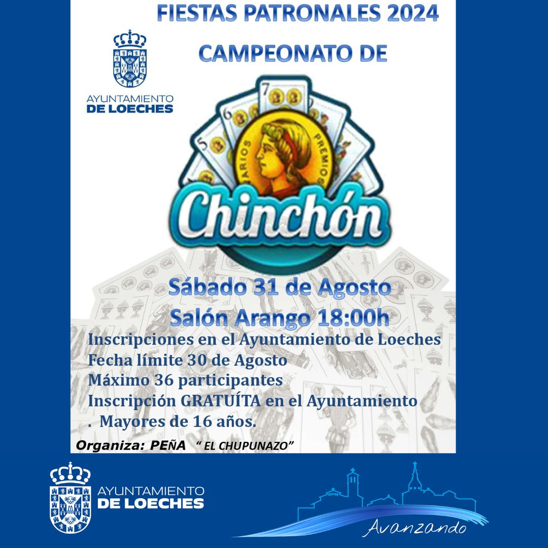 👉 CAMPEONATO DE CHINCHÓN 📅 Sábado 31 de agosto ⌚ 18:00 h 📍 Salón Arango 👉 Inscripciones...